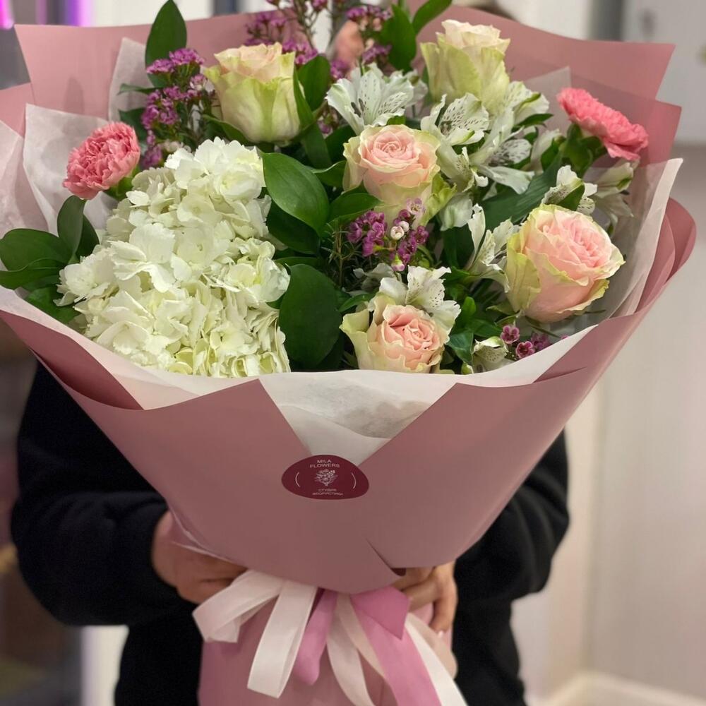 Гвоздики, Кустовые розы, Лизиантусы, Пионовидные розы, Розы