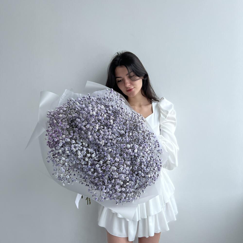 «Лавандовое созвездие» Букет из розы, гвоздики, статица и хлопка