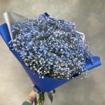 Пушистое облако голубой гипсофилы. Интересный цветочный подарок на День рожденья, выписку из роддома. Подойдёт на рождение мальчика.