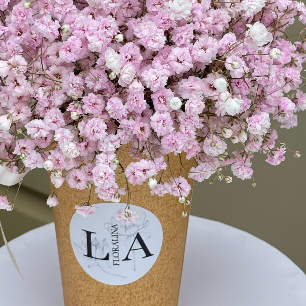 Стаканчик с гипсофилой – отличный вариант небольшого презента к основному подарку или просто так,без повода)Композиция имеет небольшой размер,ее удобно доставить домой или на работу Также она со временем превращается в сухоцвет и будет долго радовать своей красотой и … Показать ещёукрашать дом или рабочее место