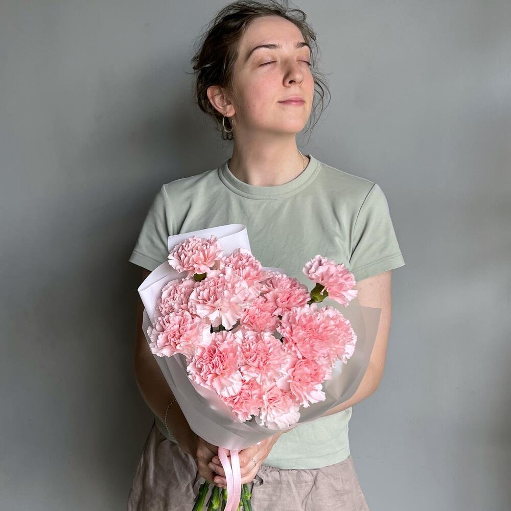 Лента – 1 шт.Дизайнерская упаковка – 1 шт.диантус light pink – 15 шт.
