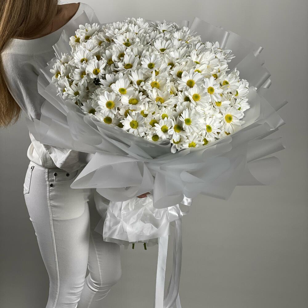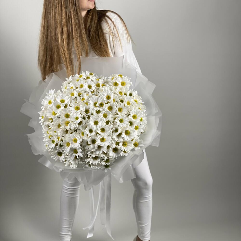 Прекрасные хризантемы в форме ромашек, порадует Ваших родных и близкий! Станет приятным подарком к любому празднику.