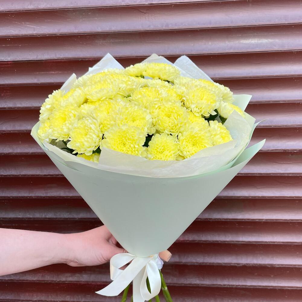 Солнечный букетик из пушистых желтых кустовых хризантем-шариков сорта Лунар. ☀️ Настоящее солнышко в руках!