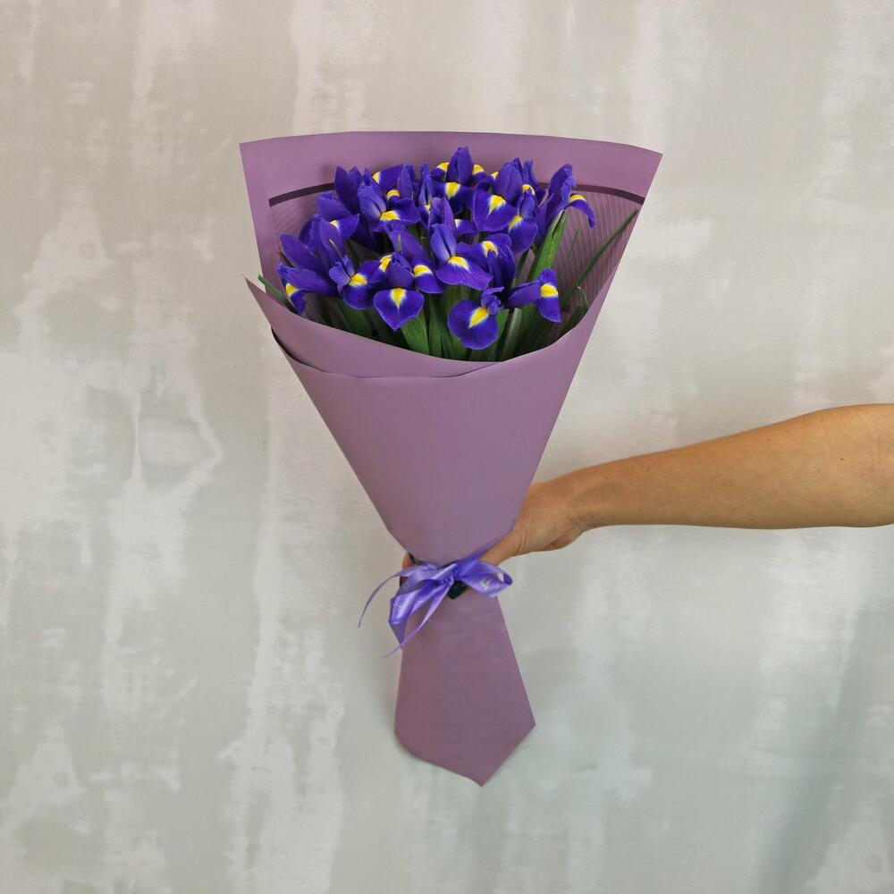Букет комплимент из 11 ирисов в дизайнерской упаковке