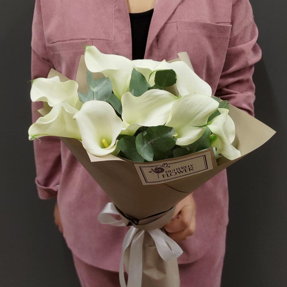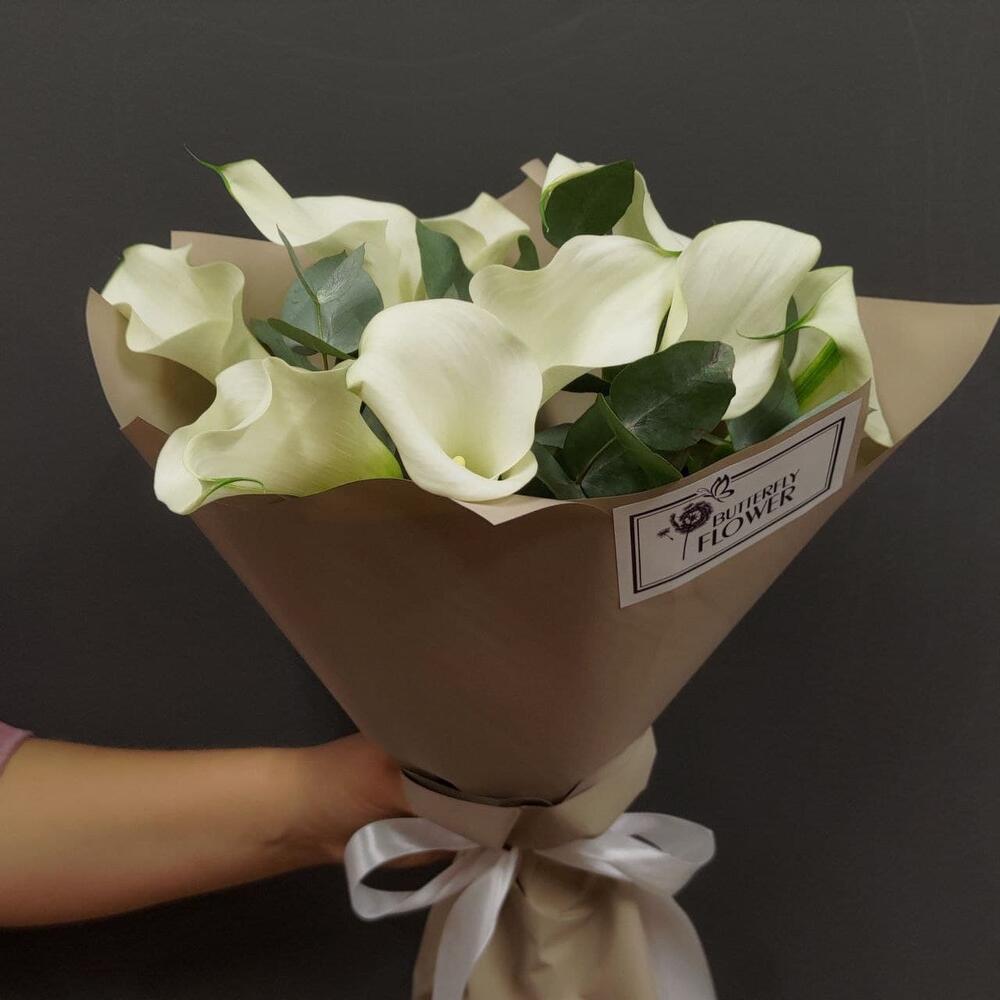 Калла – 9 шт.Эвкалипт – 3 шт.Упаковка – 2 шт.