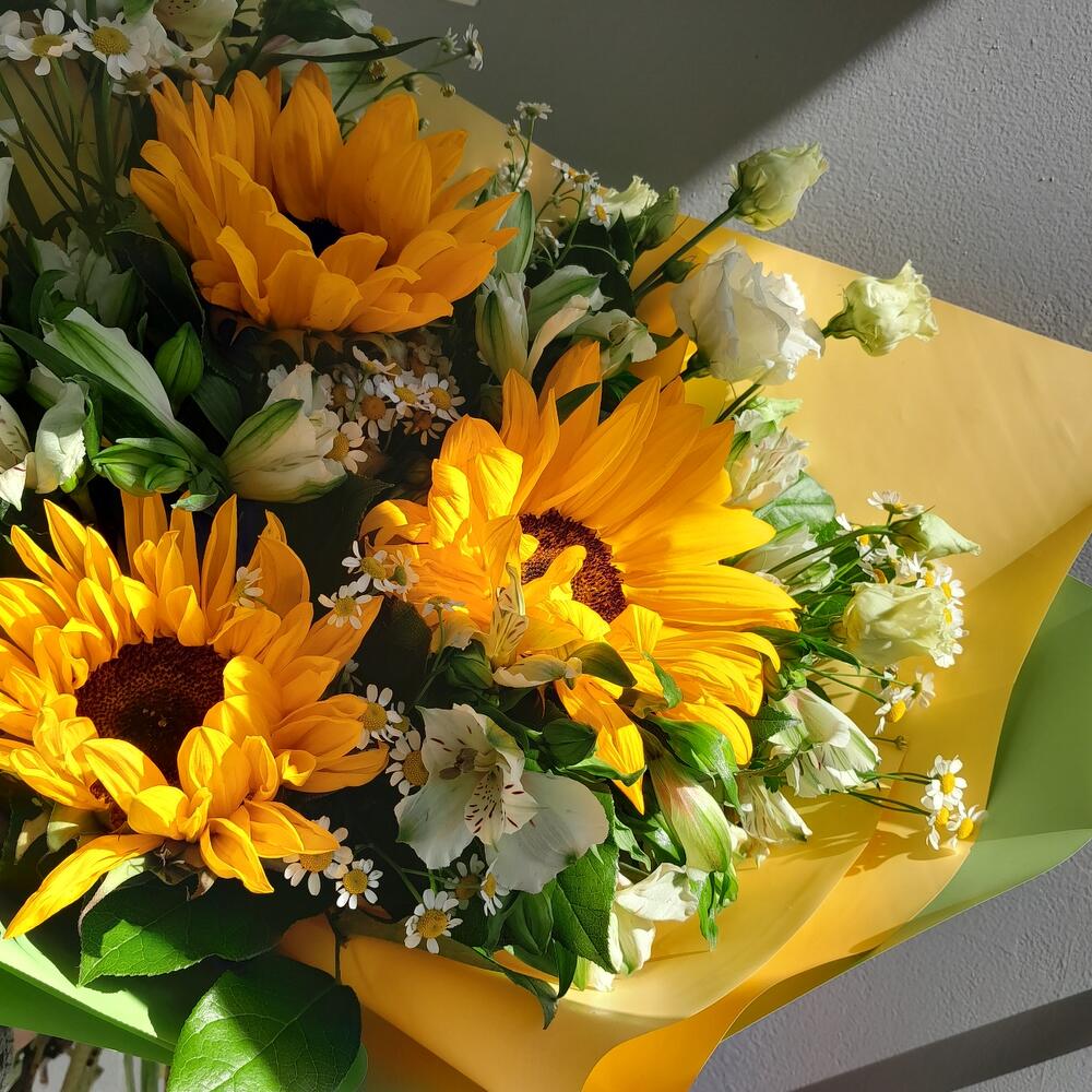 Категории: Альстромерии, Лизиантусы, Подсолнухи, Ромашки