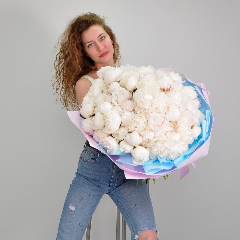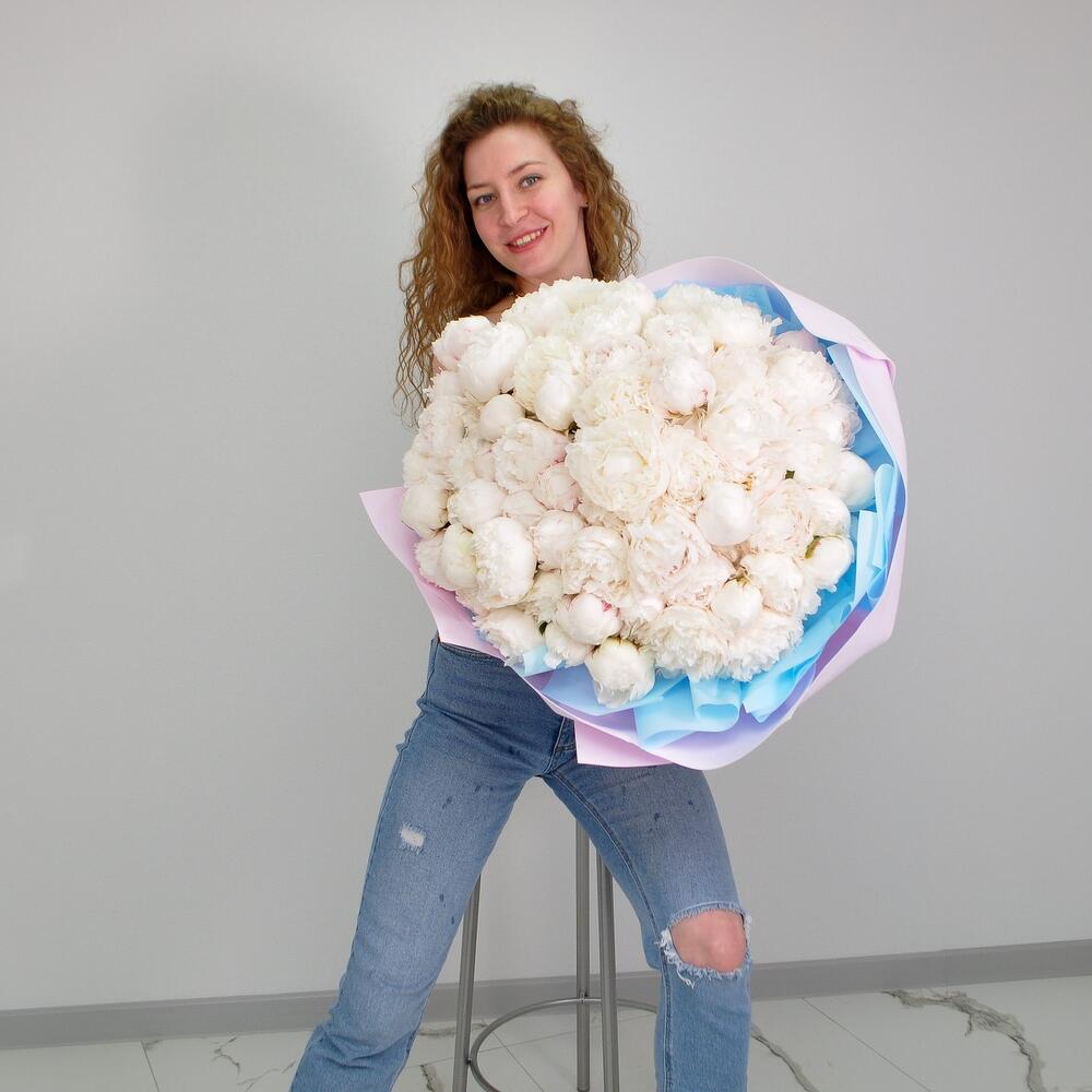 Лента атласная – 1 шт.Пион белый – 101 шт.Кризал (подкормка) – 1 шт.Пленка матовая – 5 шт.Аквапак – 1 шт.Фоамиран (упаковка) – 4 шт.инструкция по уходу за цветами – 1 шт.хорошее настроение в подарок – 1 шт.