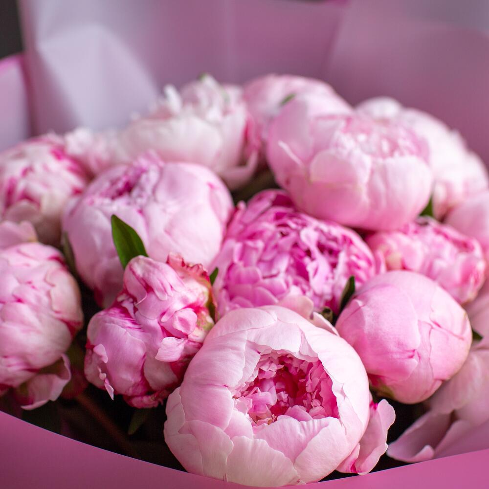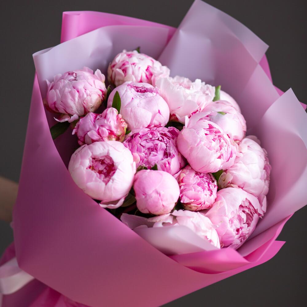 Букет из 15 розовых пионов