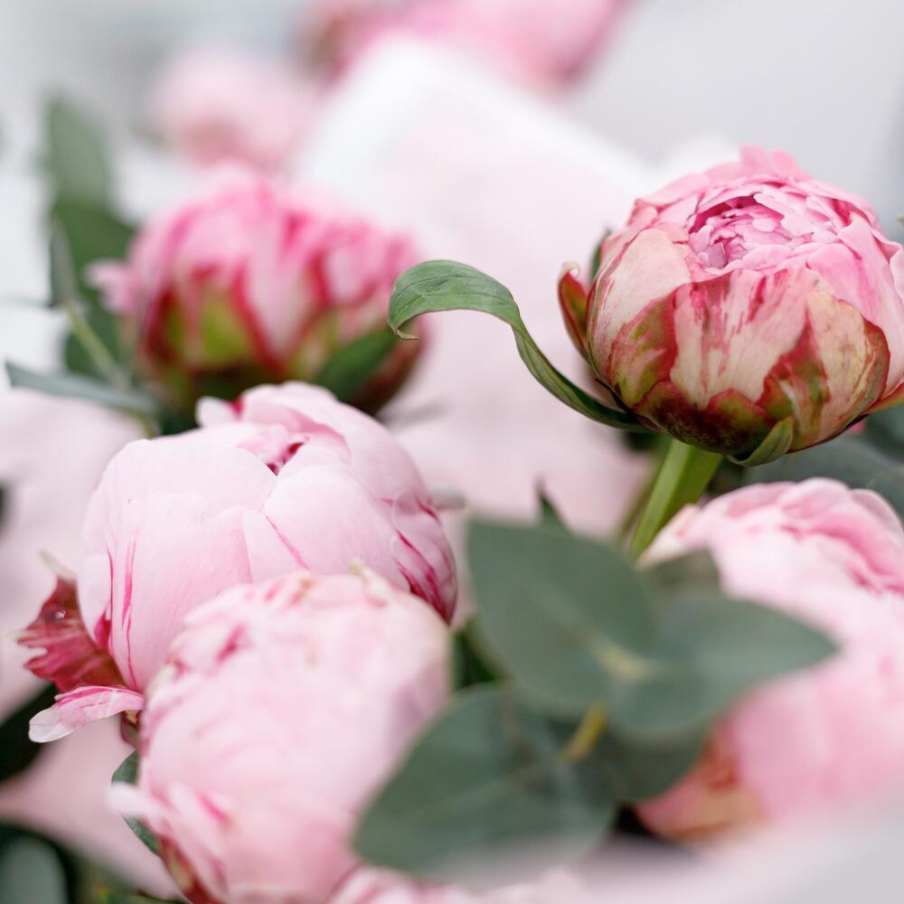 Ароматный букет в нежнейшем и одном из самых крутых сочетаний: пионы и эвкалипт.Не забудьте подрезать цветы перед тем как ставить в воду. Не храните букет на прямых солнечных лучах и возле отопительных приборов, чтобы сохранить цветы как можно дольше.К букету можно добавить открытку, воздушные шары, плюшевую игрушку. Что бы вам подарок остался не забываем .