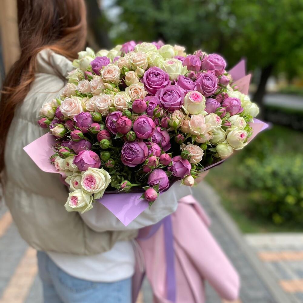 Альстромерии, Кустовые розы, Лизиантусы, Пионовидные розы, Розы, Ромашки