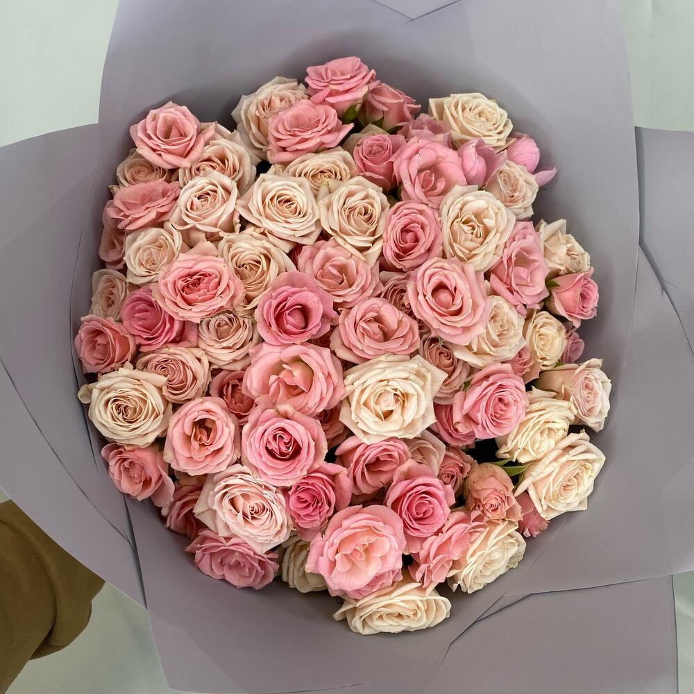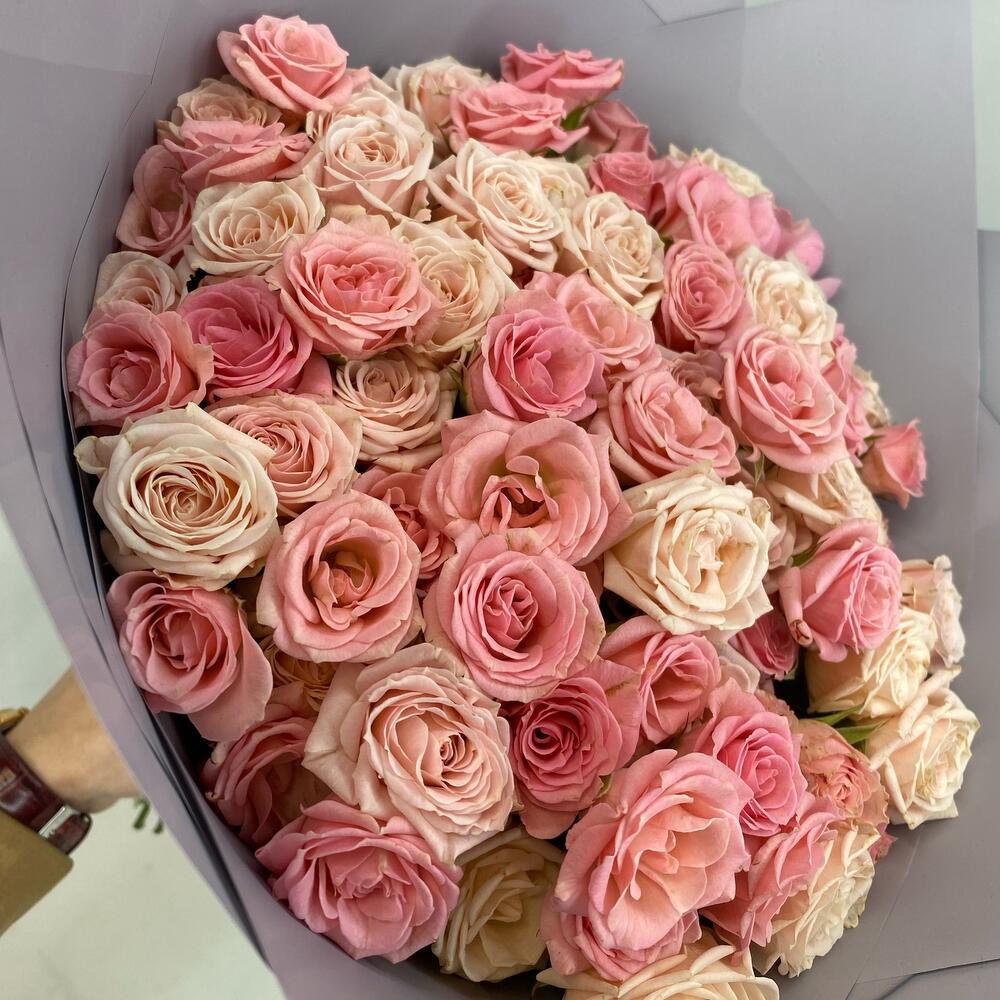 кустовая роза микс – 31 шт.Упаковка – 3 шт.Атласная лента – 1 шт.