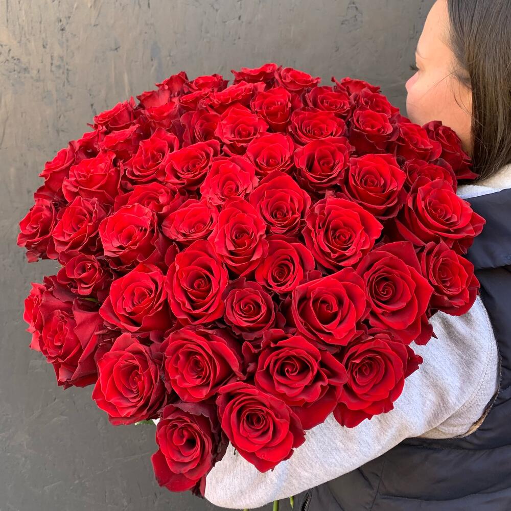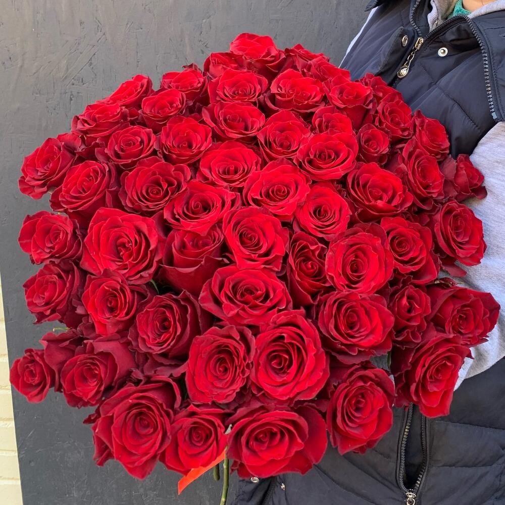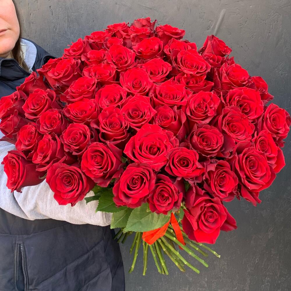 Букет из 55 длинных красных роз