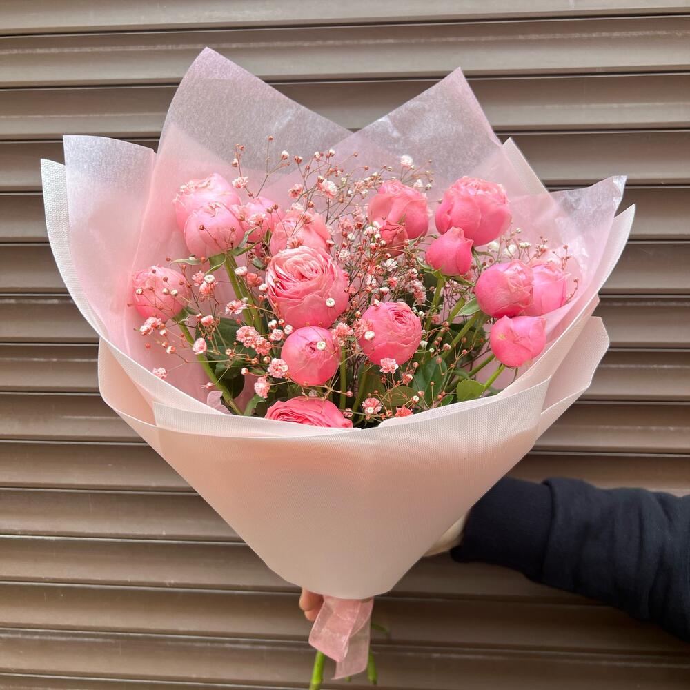 Гипсофила – 2 шт.Пленка матовая – 1 шт.сильва пинк кустовая роза – 3 шт.