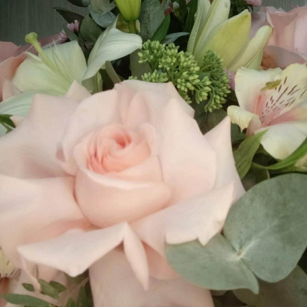 Категории: Альстромерии, Лилии, Розы, Эвкалипт