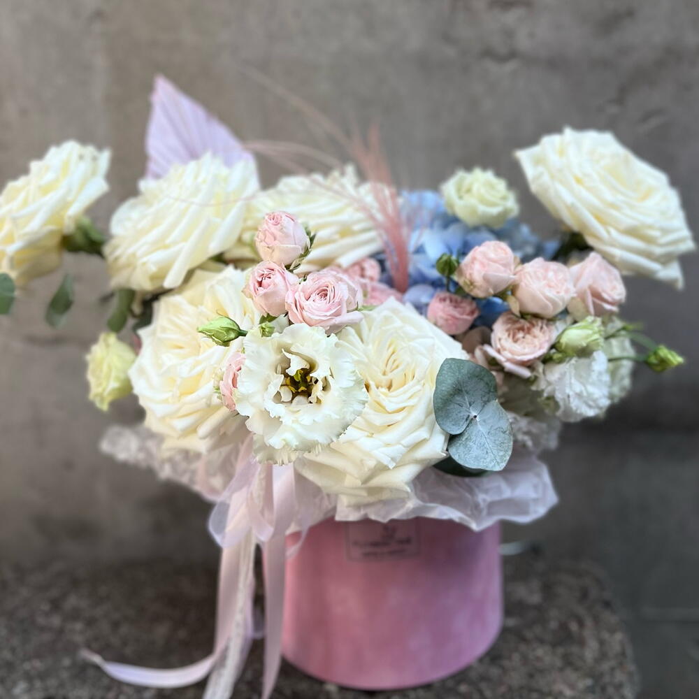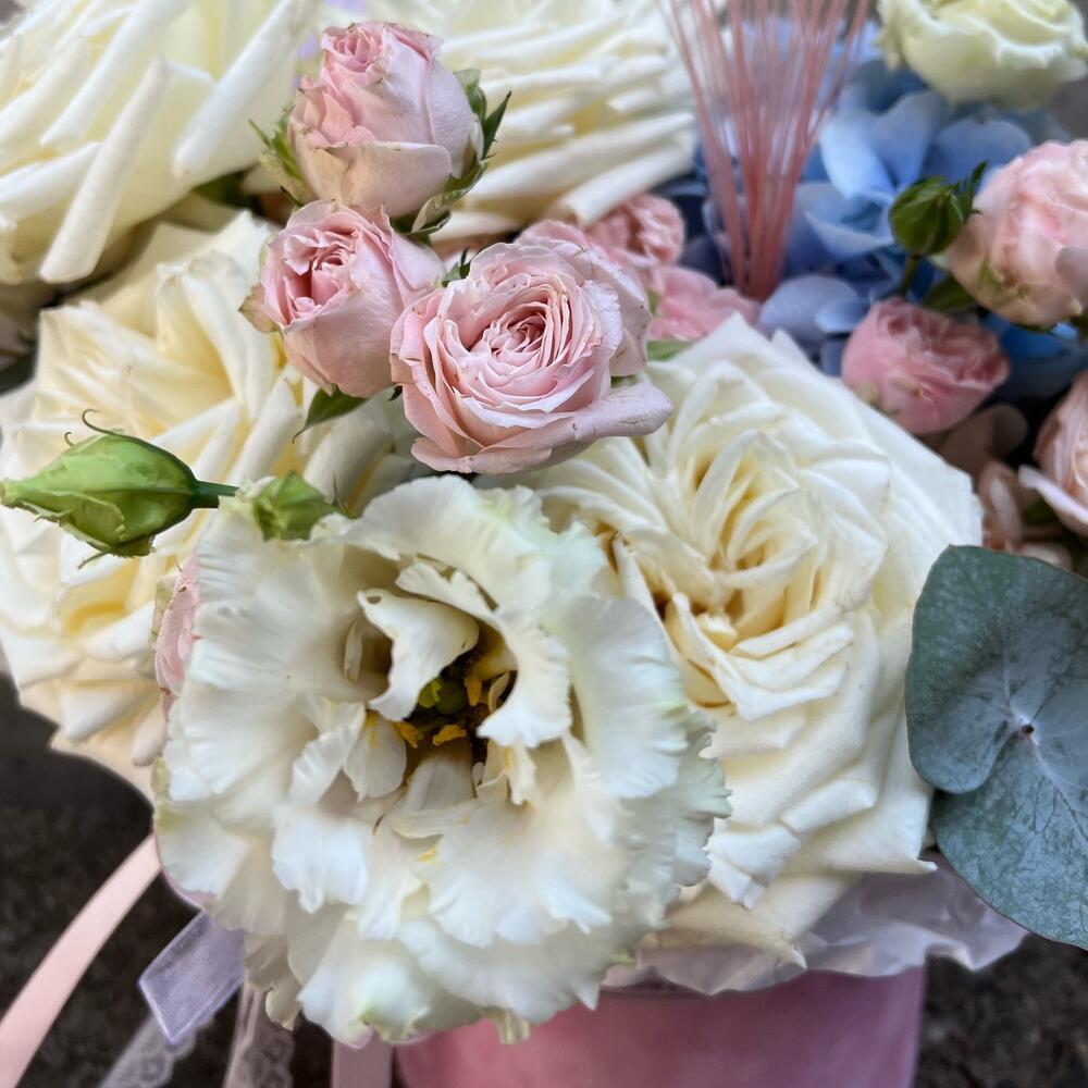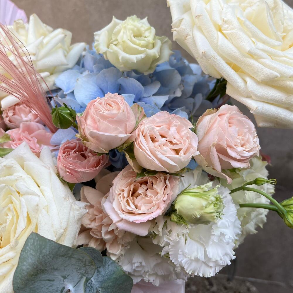 Гвоздики, Кустовые розы, Лизиантусы, Пионовидные розы, Розы
