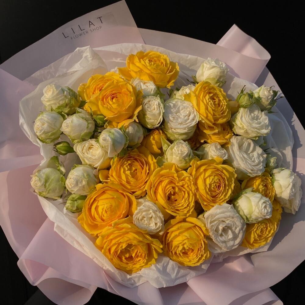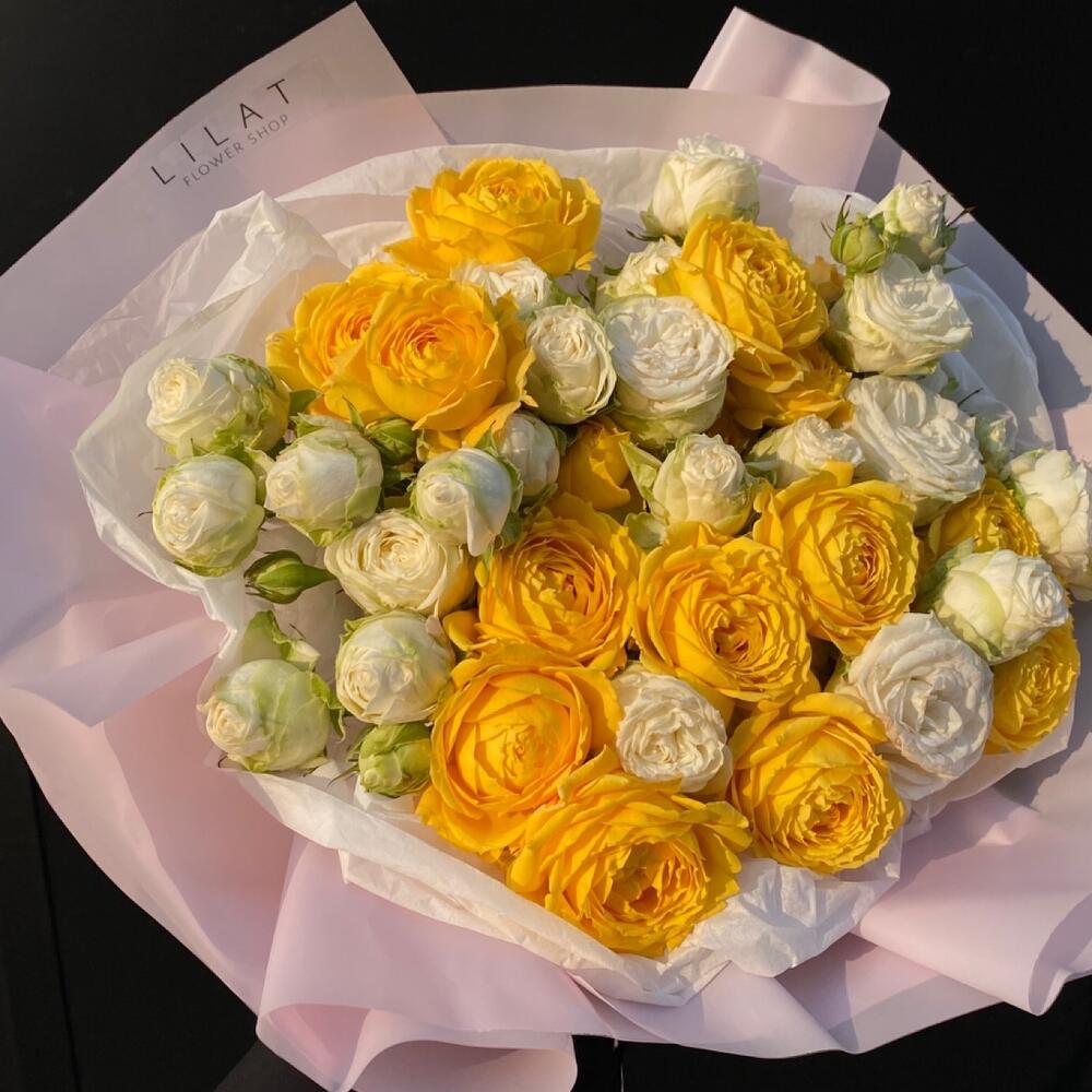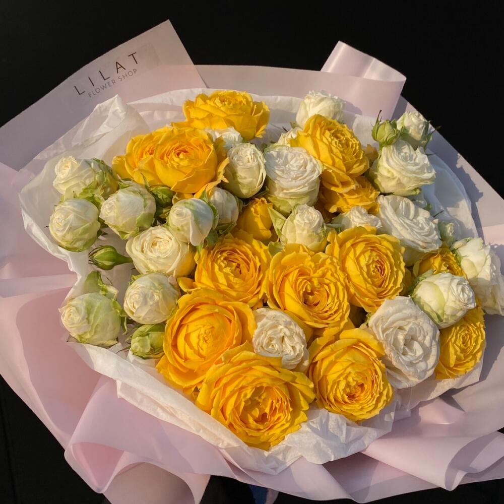 Альстромерии, Гвоздики, Кустовые розы, Лизиантусы, Розы, Хризантемы