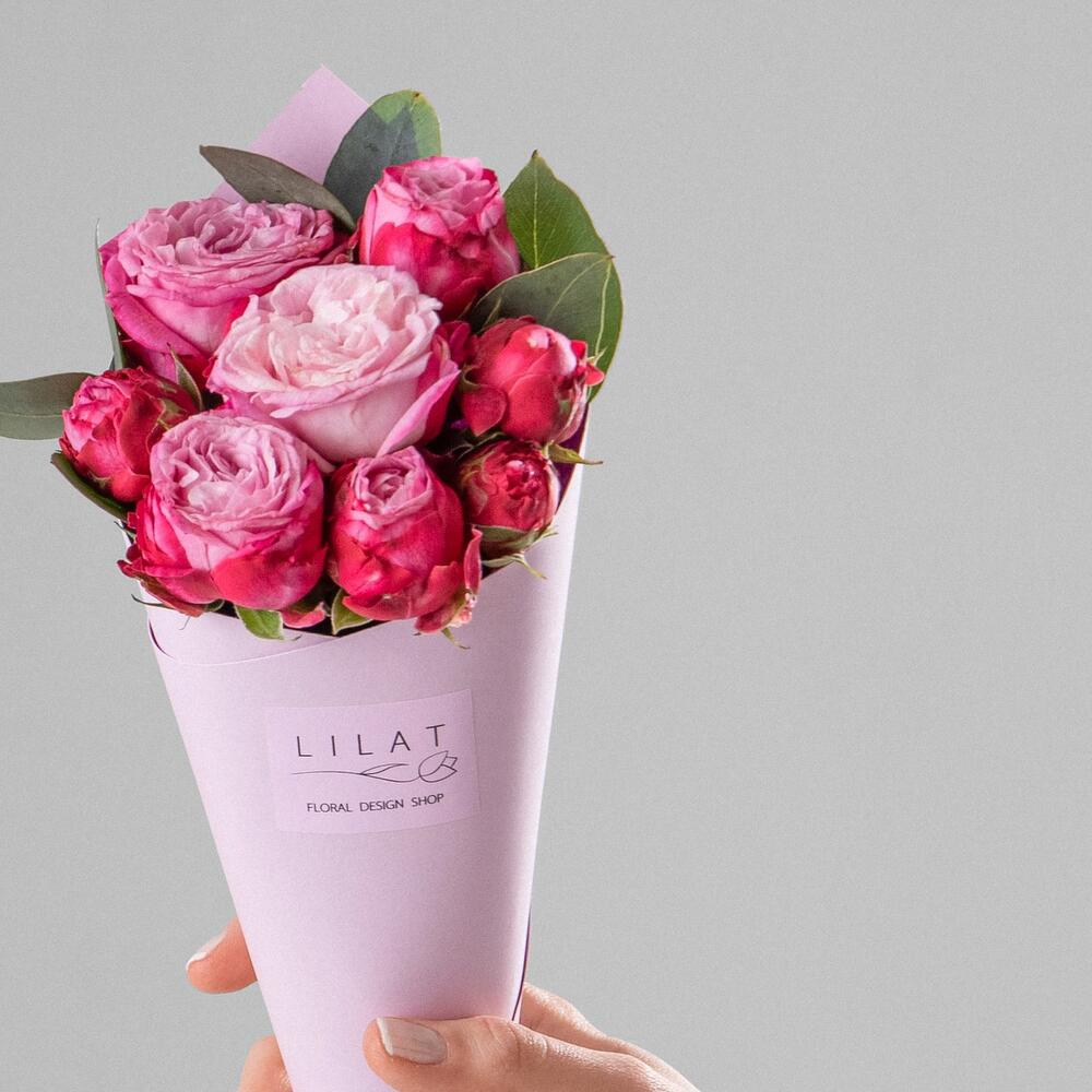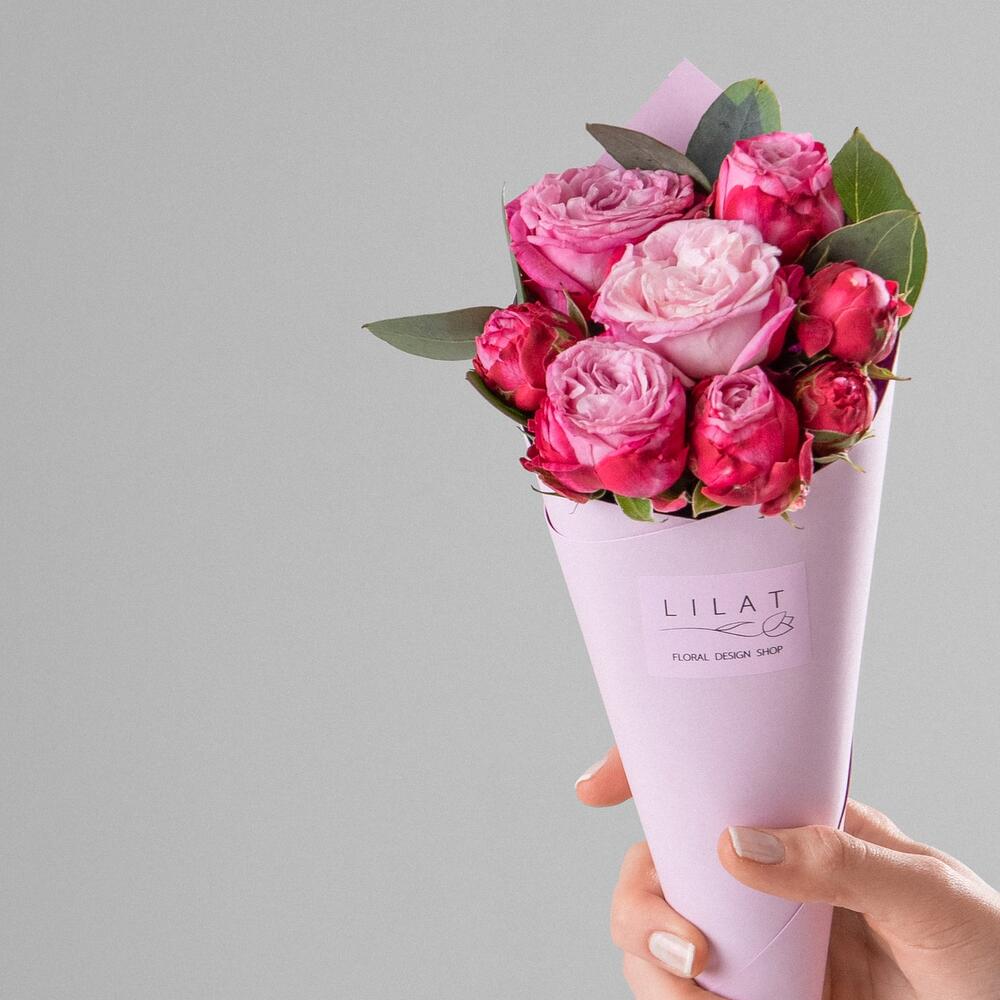 Пионовидная кустовая роза – 7 шт. Упаковка дизайнерская – 1 шт. Открыточка с вашими пожеланиями – 1 шт.