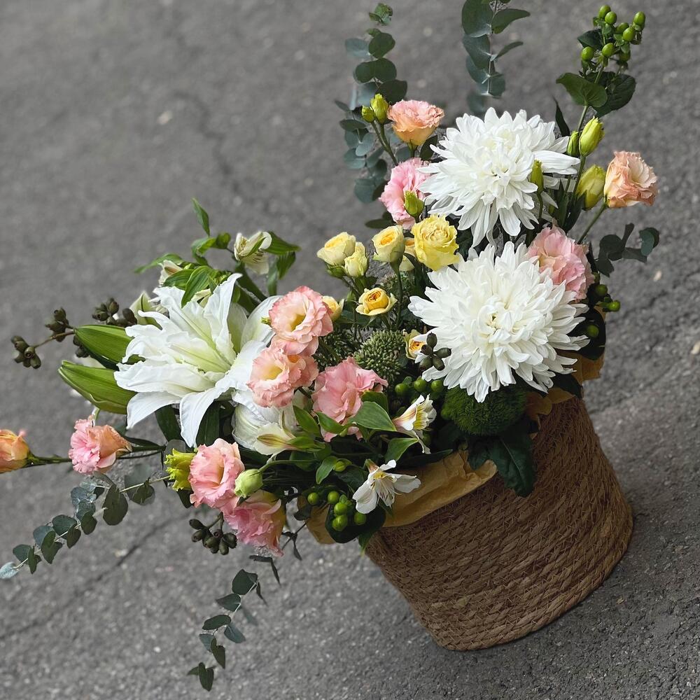 Метки: от 4000 до 5000 руб, цветы в корзине