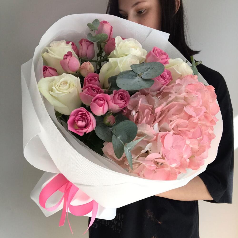 Гвоздики, Кустовые розы, Лизиантусы, Пионовидные розы, Розы