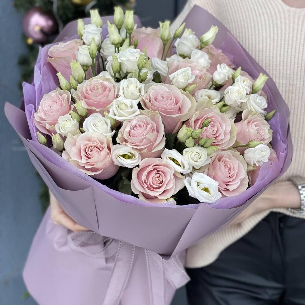 Альстромерии, Гортензии, Кустовые розы, Лизиантусы, Розы, Хризантемы