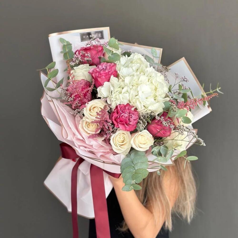 Гвоздики, Кустовые розы, Лизиантусы, Пионовидные розы, Розы
