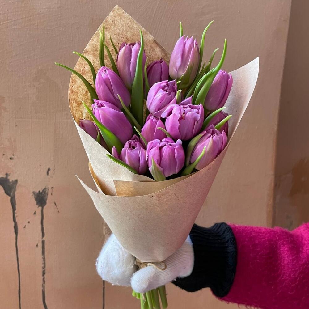 Крафтовая упаковка – 1 шт.сиреневый пионовидный тюльпан – 15 шт.